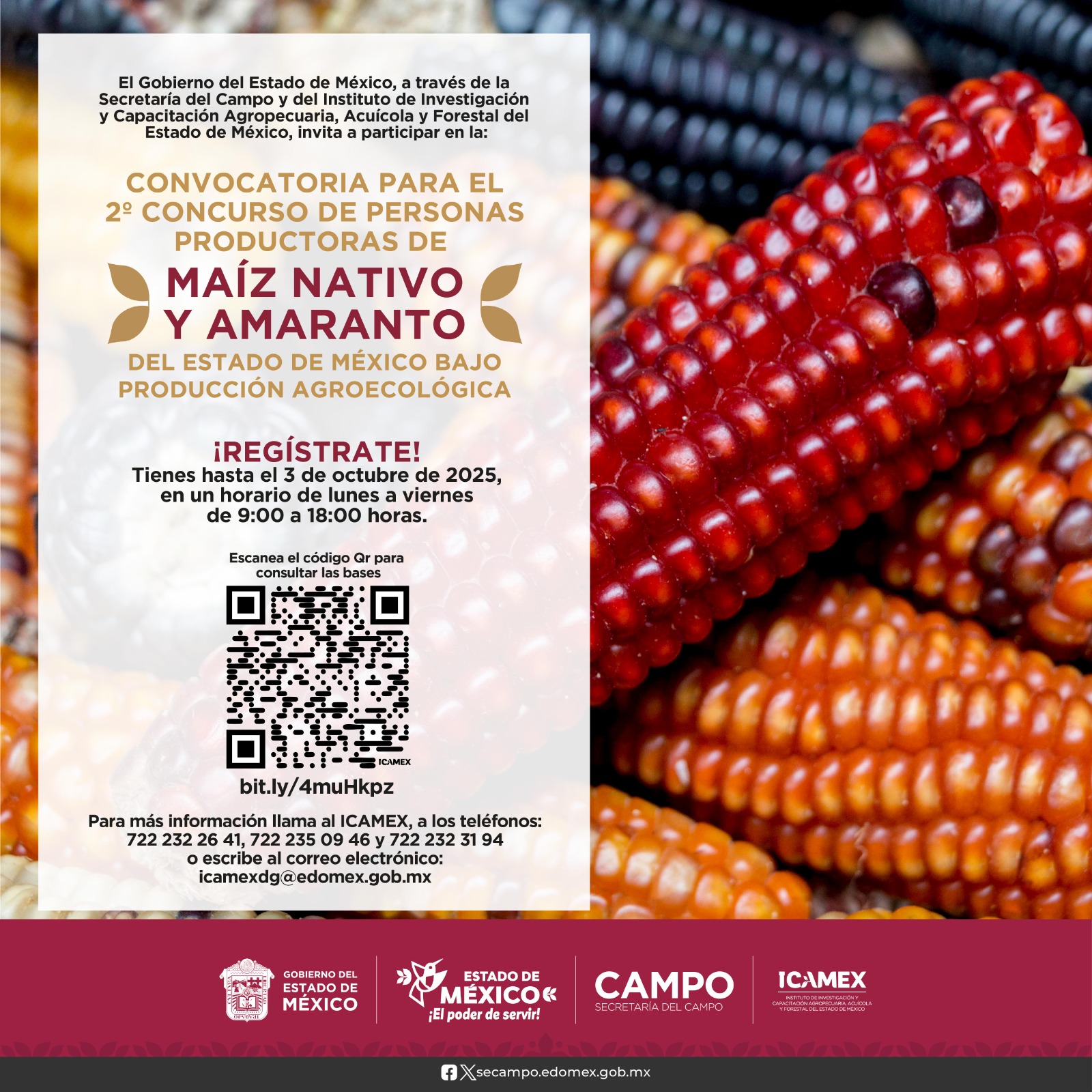 CONVOCATORIA AL SEGUNDO CONCURSO DE PERSONAS PRODUCTORAS DE MAÍZ NATIVO Y AMARANTO DEL ESTADO DE MÉXICO BAJO PRODUCCIÓN AGROECOLÓGICA 2025